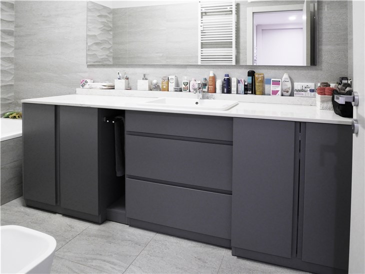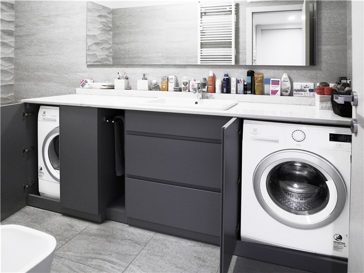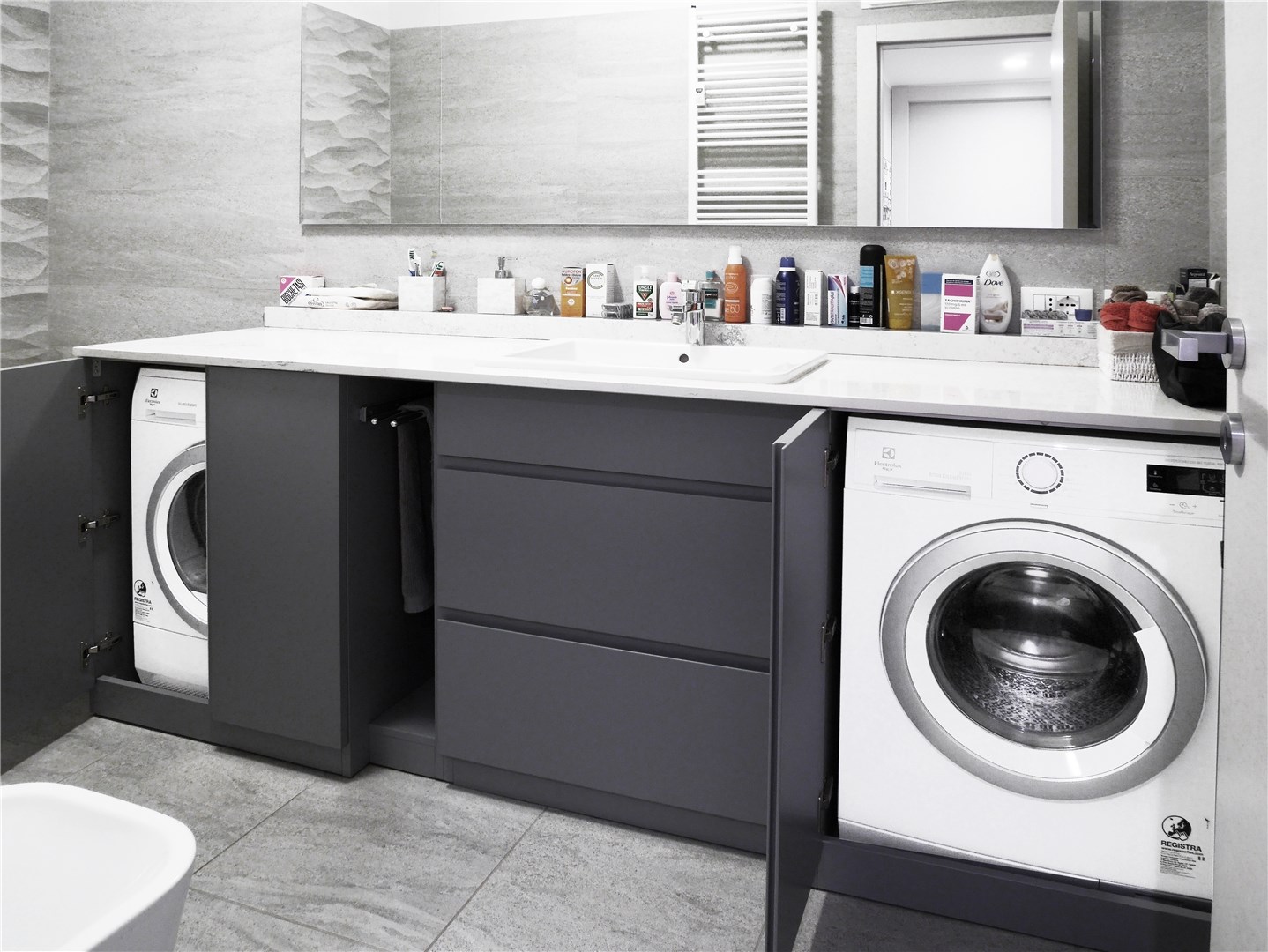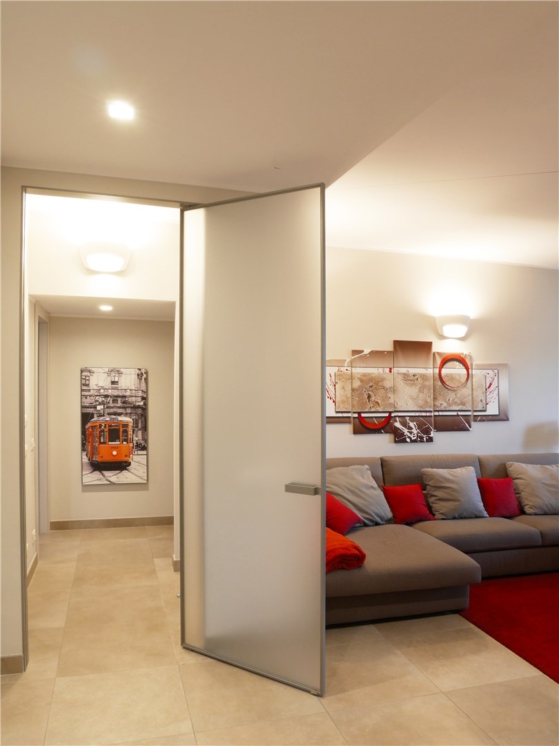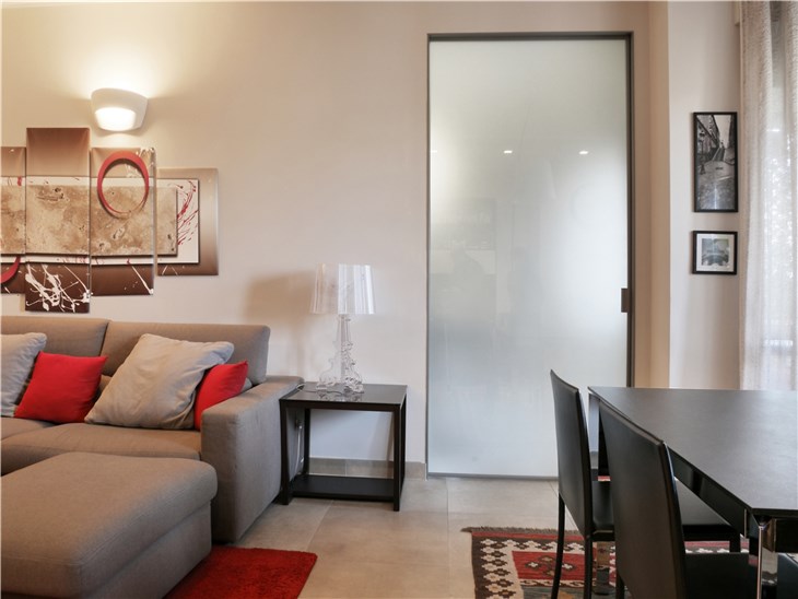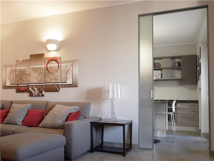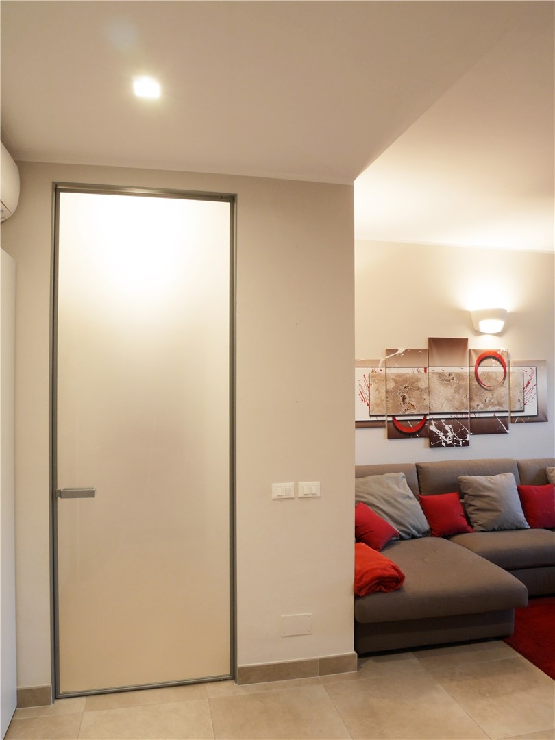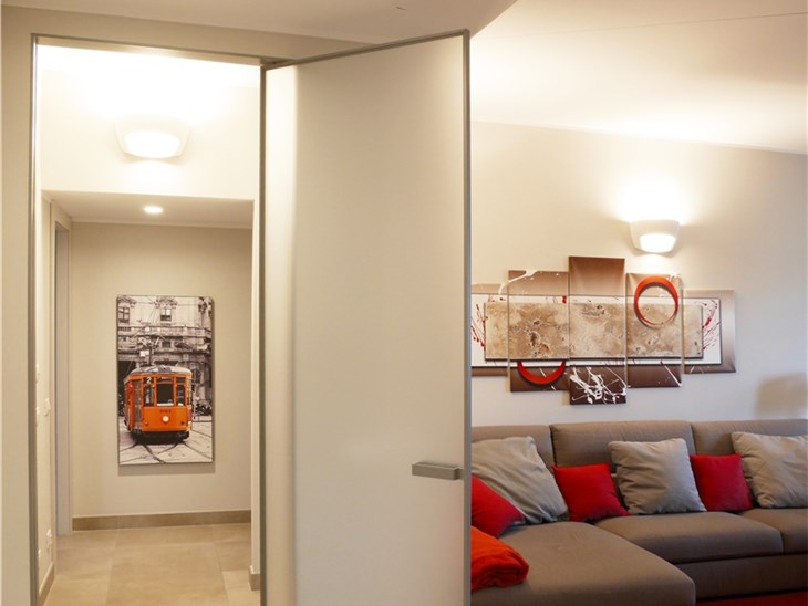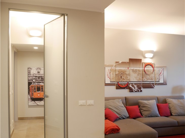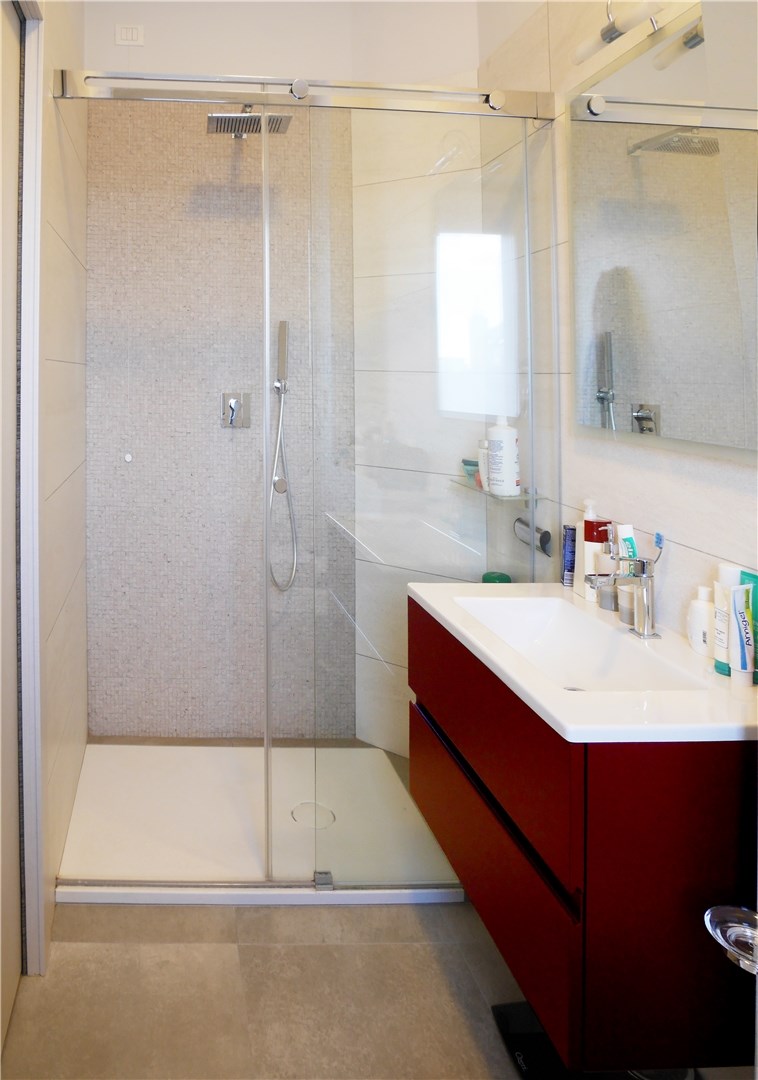 Ristrutturazione integrale di una casa per una famiglia di tre persone. La distribuzione è stata completamente modificata, per spostare la cucina dalla parte opposta della casa e realizzare il desiderio della padrona di casa di avere la cucina parzialmente aperta sul living. E’ stata poi realizzata una cameretta al posto della precedente cucina, una camera matrimoniale con bagno in camera e cabina armadio e un ampio bagno principale con zona lavanderia nascosta all’interno di un elegante mobile su misura.