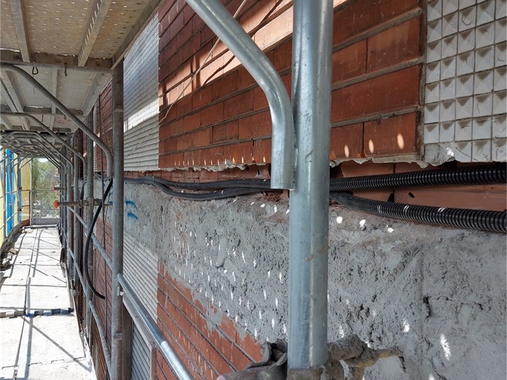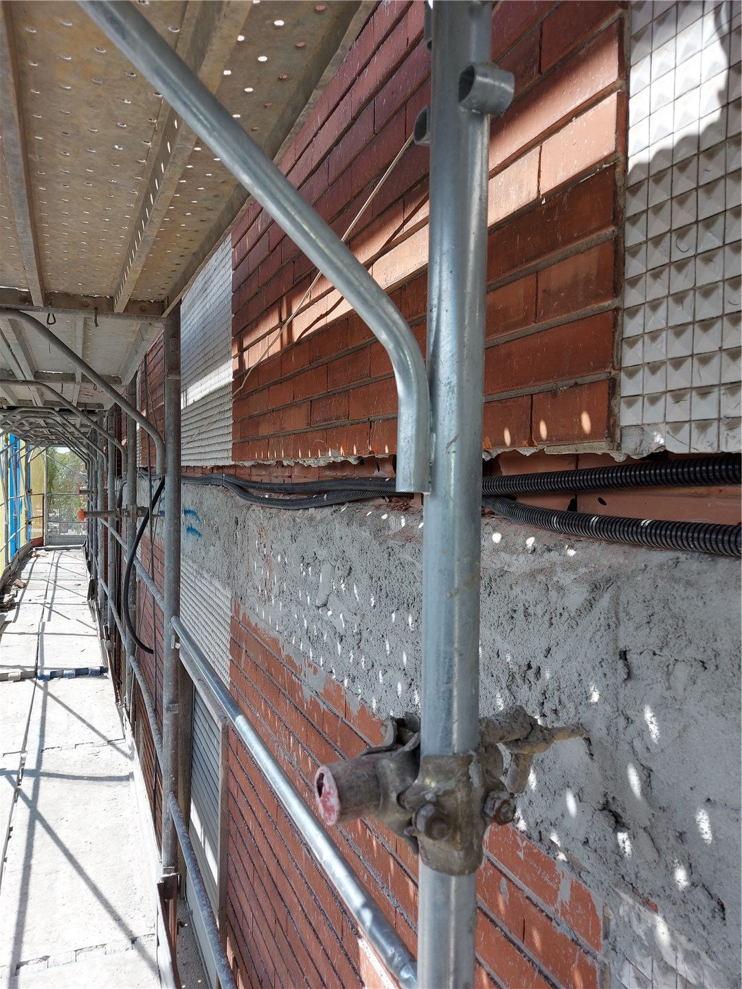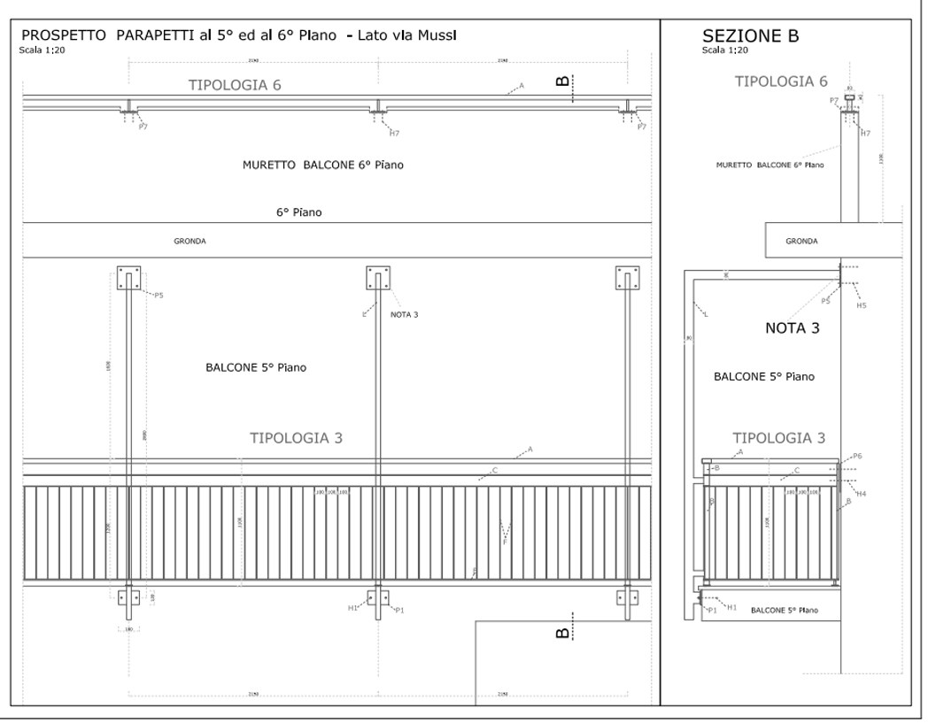 Intervento di manutenzione straordinaria di edificio condominiale sito in Milano, VIa Mussi. L'itntervento ha riguardato il rifacimento delle facciate e dei parapetti dell'edificio. Le facciate erano in precedenza rivestite in tesserine di Klinker effetto cotto, in fase di distacco e fortemente deteriorate. Le porzioni in fase di distacco sono state demolite, e la facciata è sata successivamente interamente intonacata e finita con colore rosso. I parapetti sono stati interamete sostituiti con parapetti nuovi, a norma di legge (progetto strutturale ing. Antonio Sgotto).